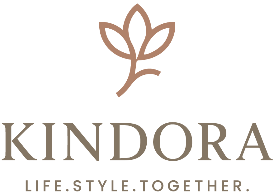 Kindora merges 'kin' (family) and 'dora' (gift), representing thoughtful lifestyle products for families. It’s about care, comfort, and shared living.