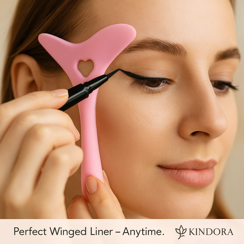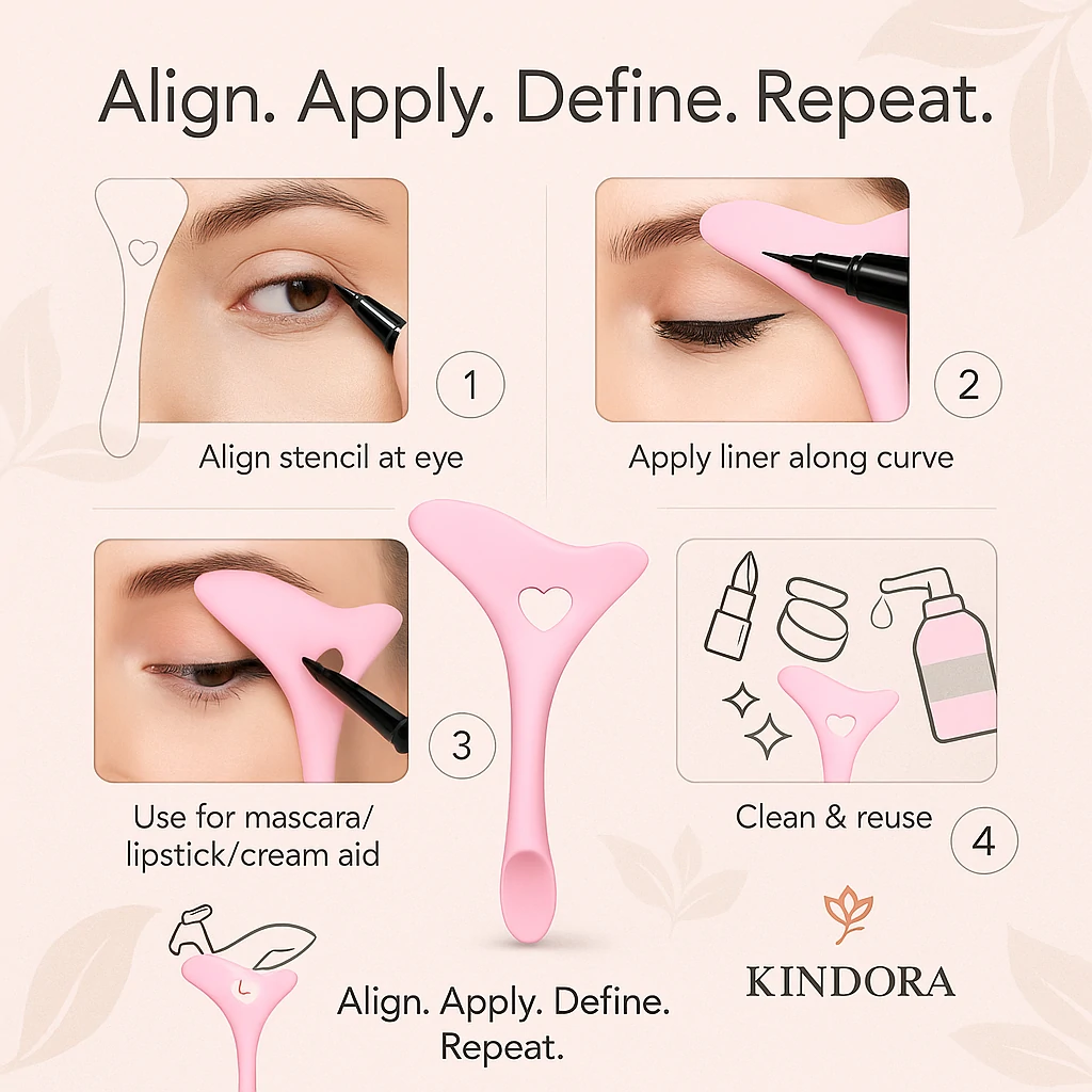 Achieve sharp eyeliner in seconds with a reusable stencil that fits most eye shapes.