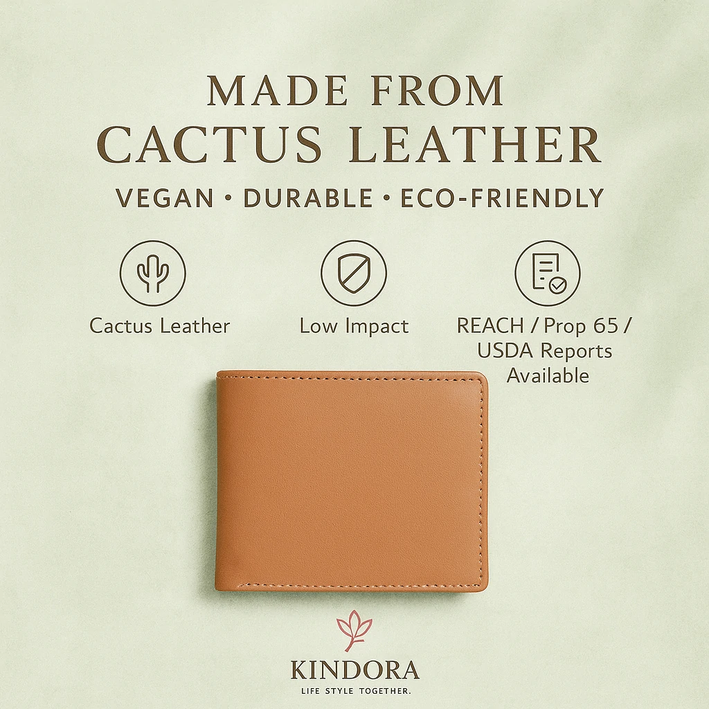Bifold cactus leather wallet offering style, space, and sustainability.