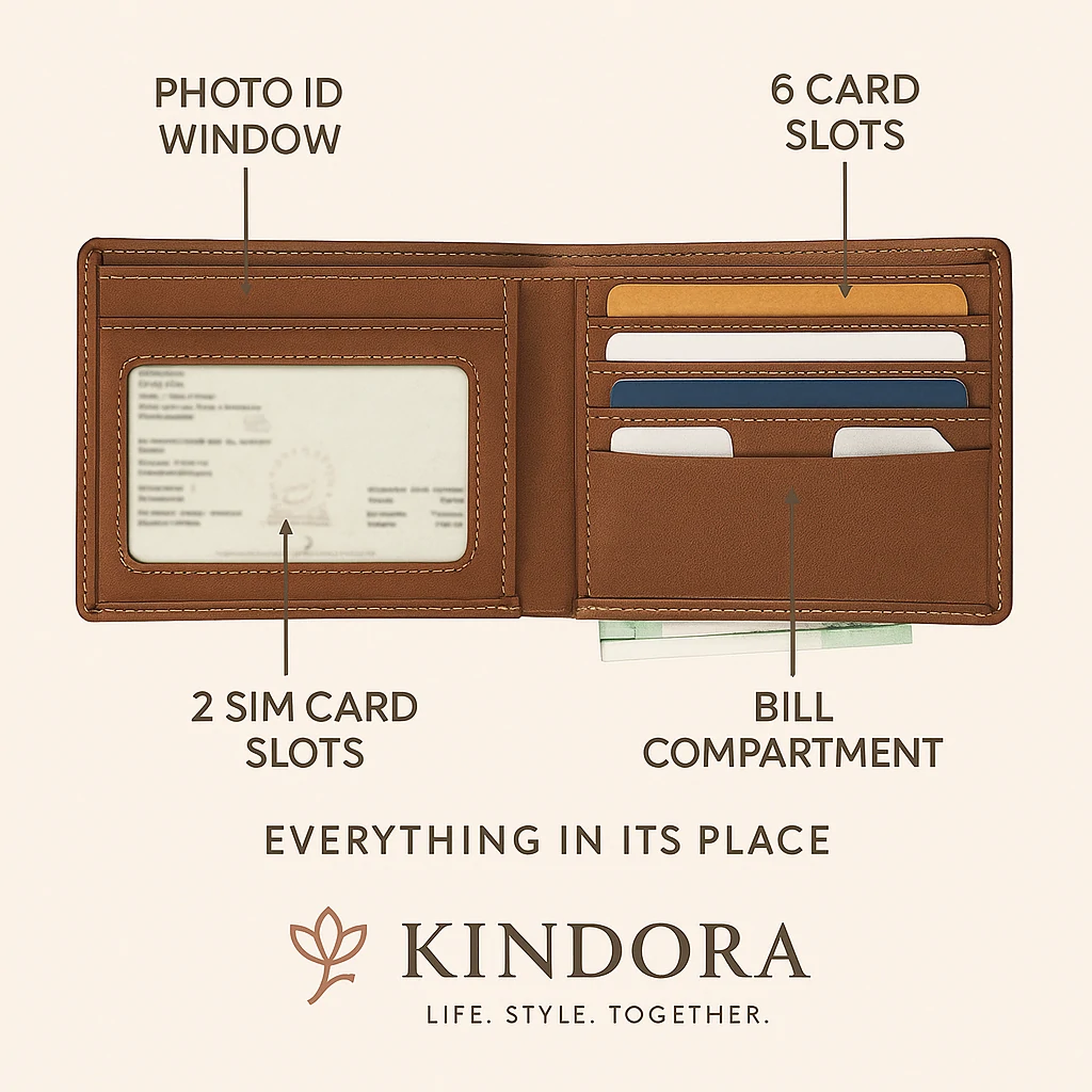- Ample slots for cards & cash