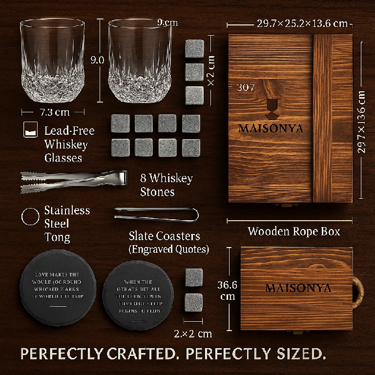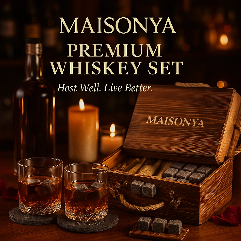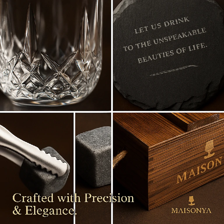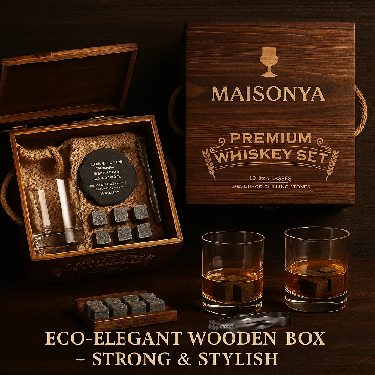 Curated for connoisseurs—premium glassware and reusable chilling stones packaged for memorable gifting and hospitality.