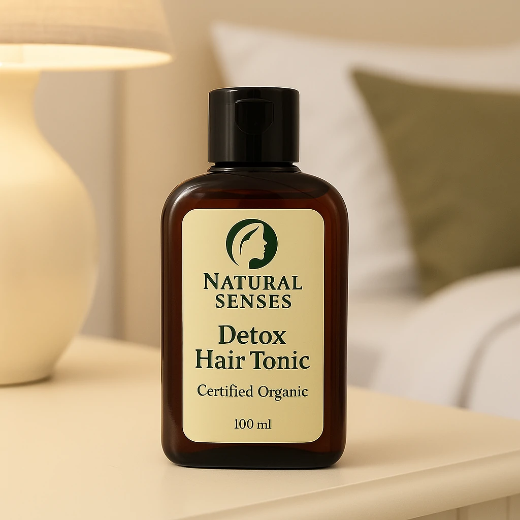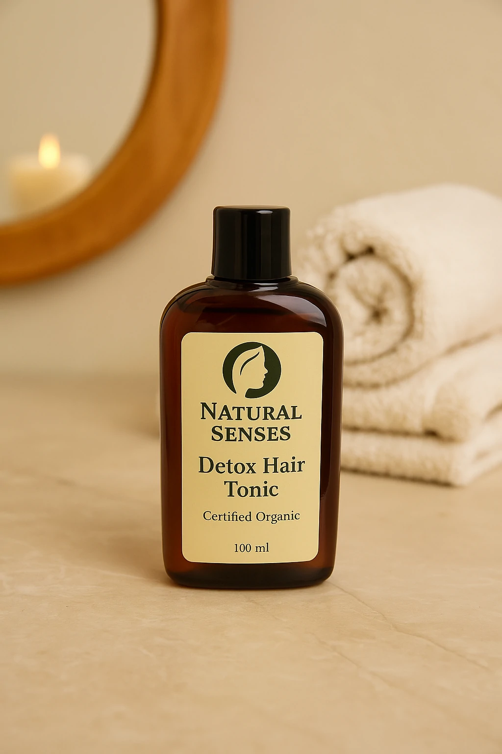 Rejuvenating herbal hair tonic designed to detoxify the scalp, strengthen roots, and promote healthy hair growth.