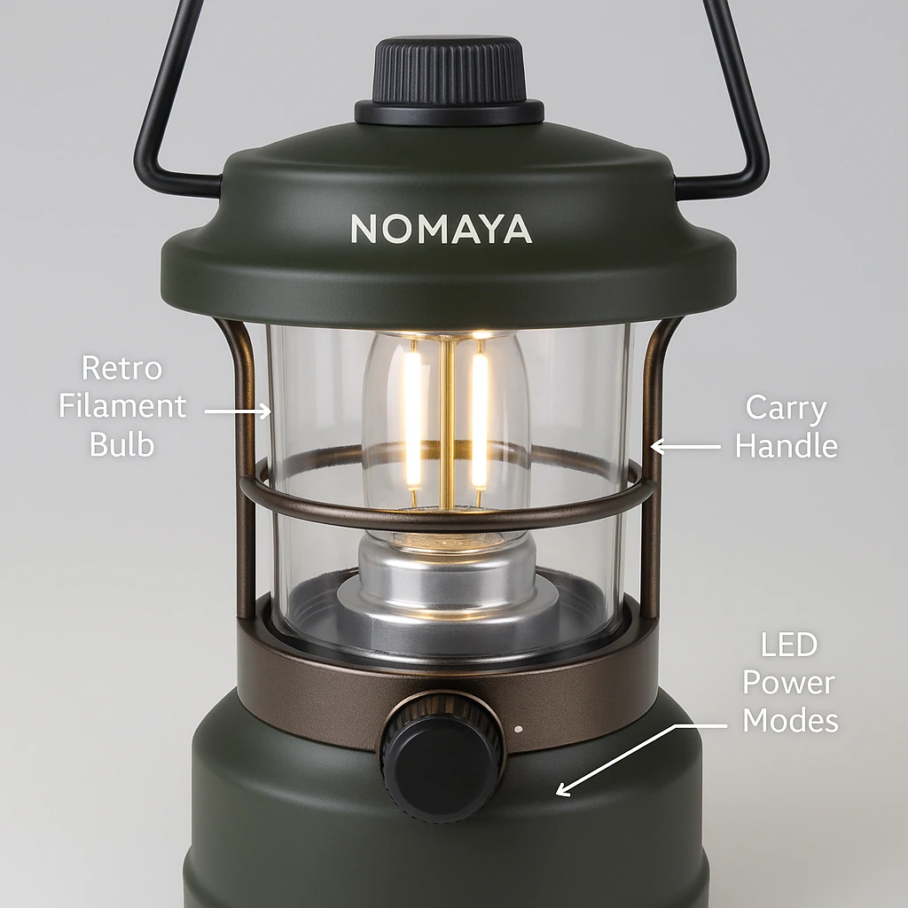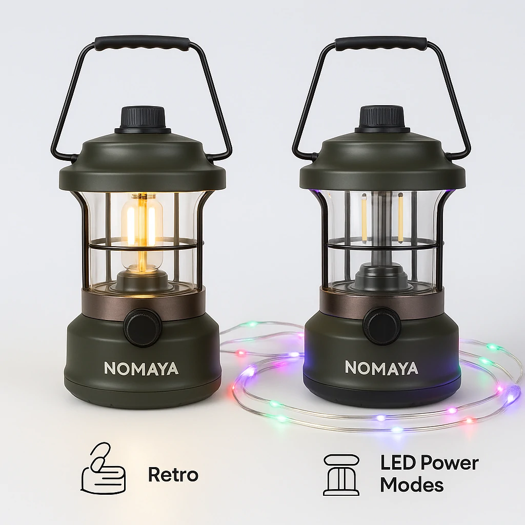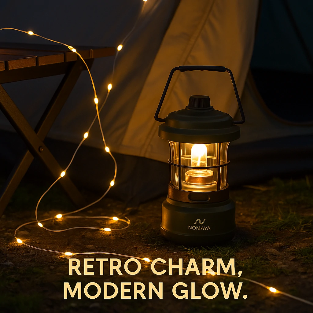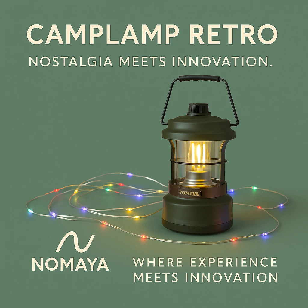 Nomaya Camplamp Retro delivers timeless charm with modern reliability, offering adjustable brightness and waterproof protection for camping and outdoor use.