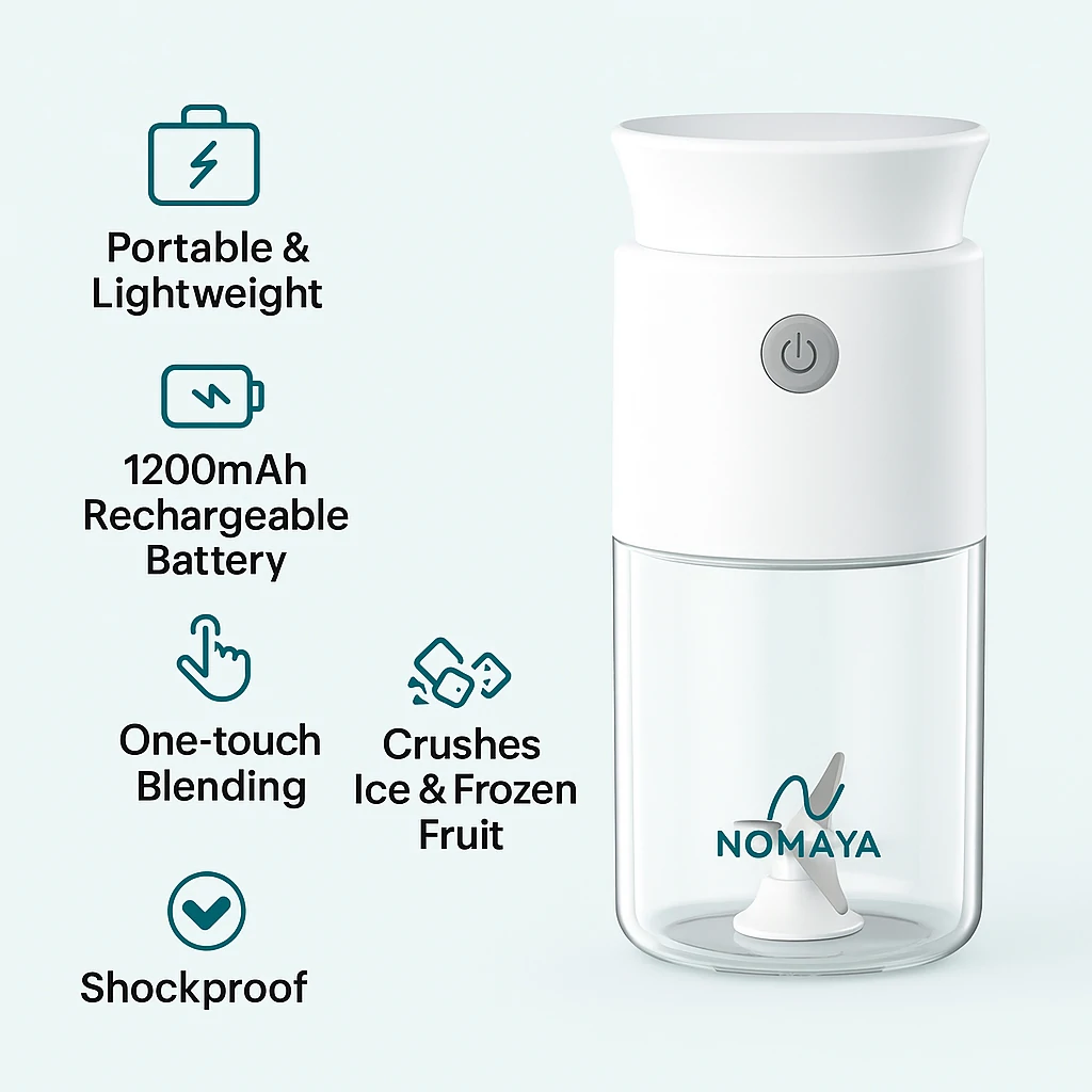 Nomaya Mini Portable Blender brings powerful blending to compact form, combining convenience and style for active lifestyles.