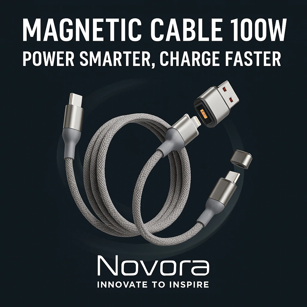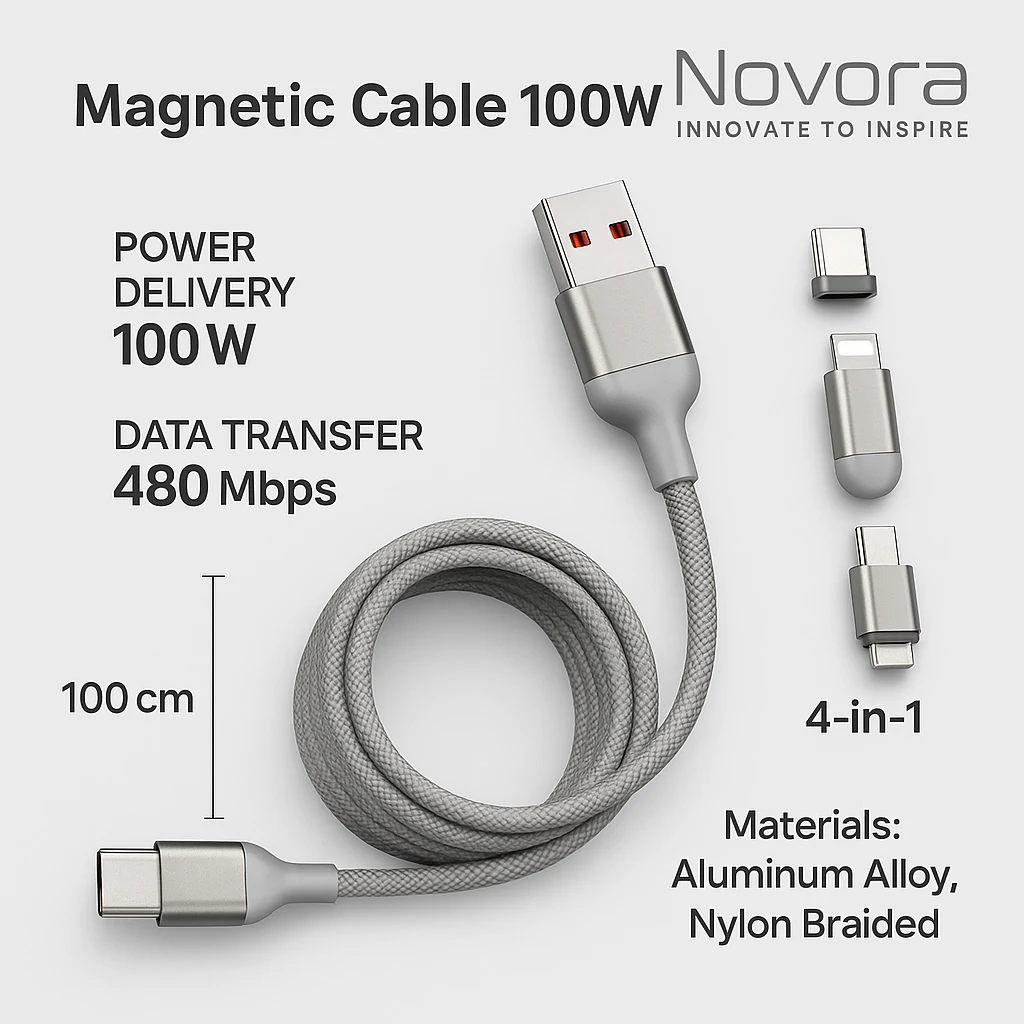 Durable magnetic cable supporting 100W high-speed charging.