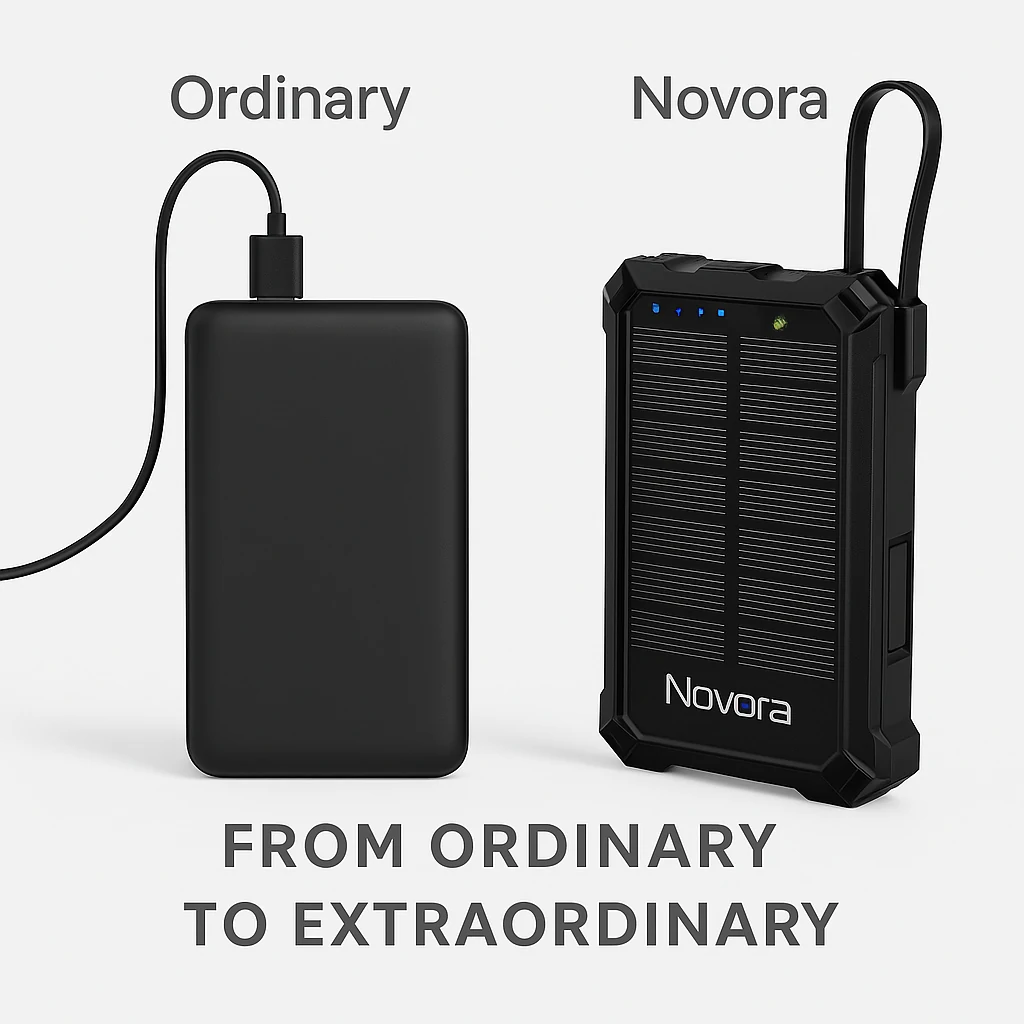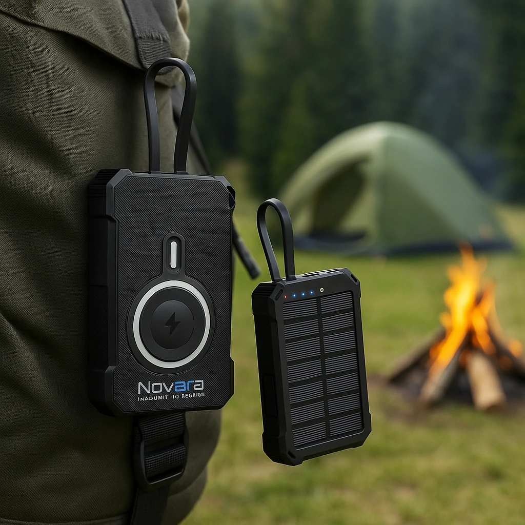 Intro: The Novora 10000mAh 5-in-1 Magnetic Solar Power Bank is an advanced charging solution that integrates solar energy, magnetic wireless charging, and versatile outputs in one rugged device. Designed with eco-conscious recycled materials, this product is perfect for sustainable travel and outdoor lifestyles.
