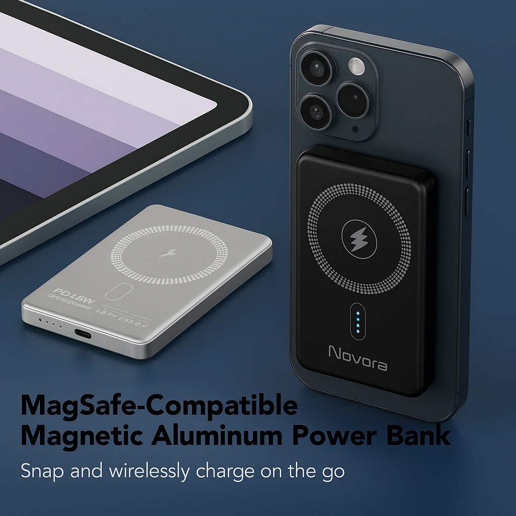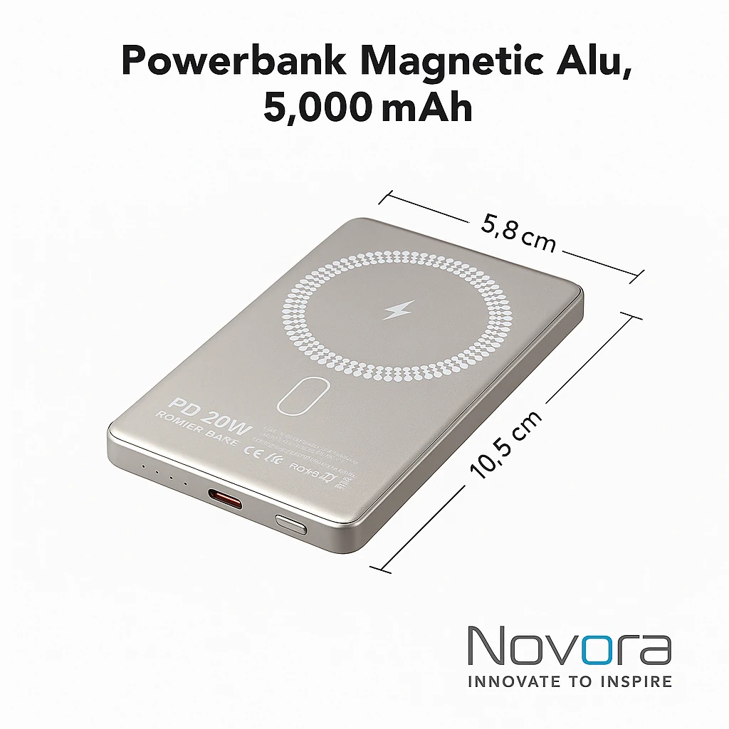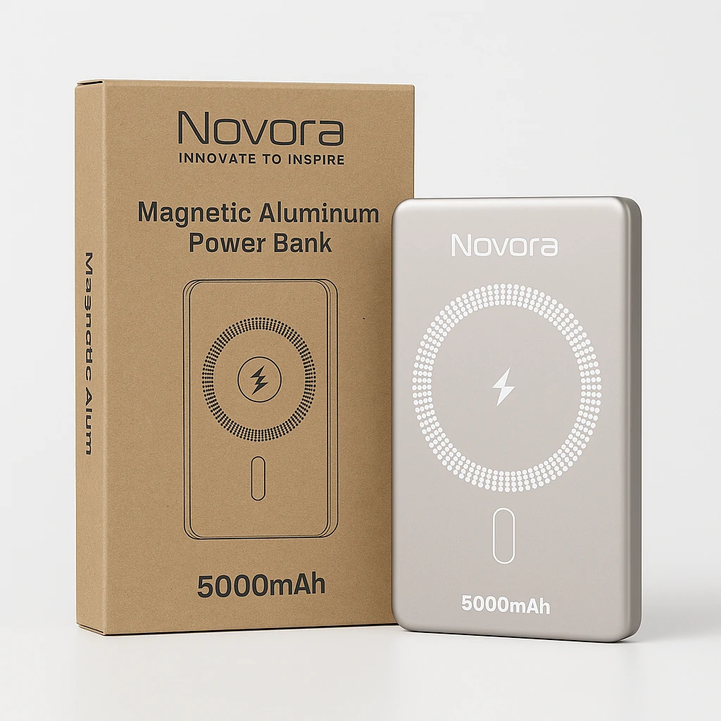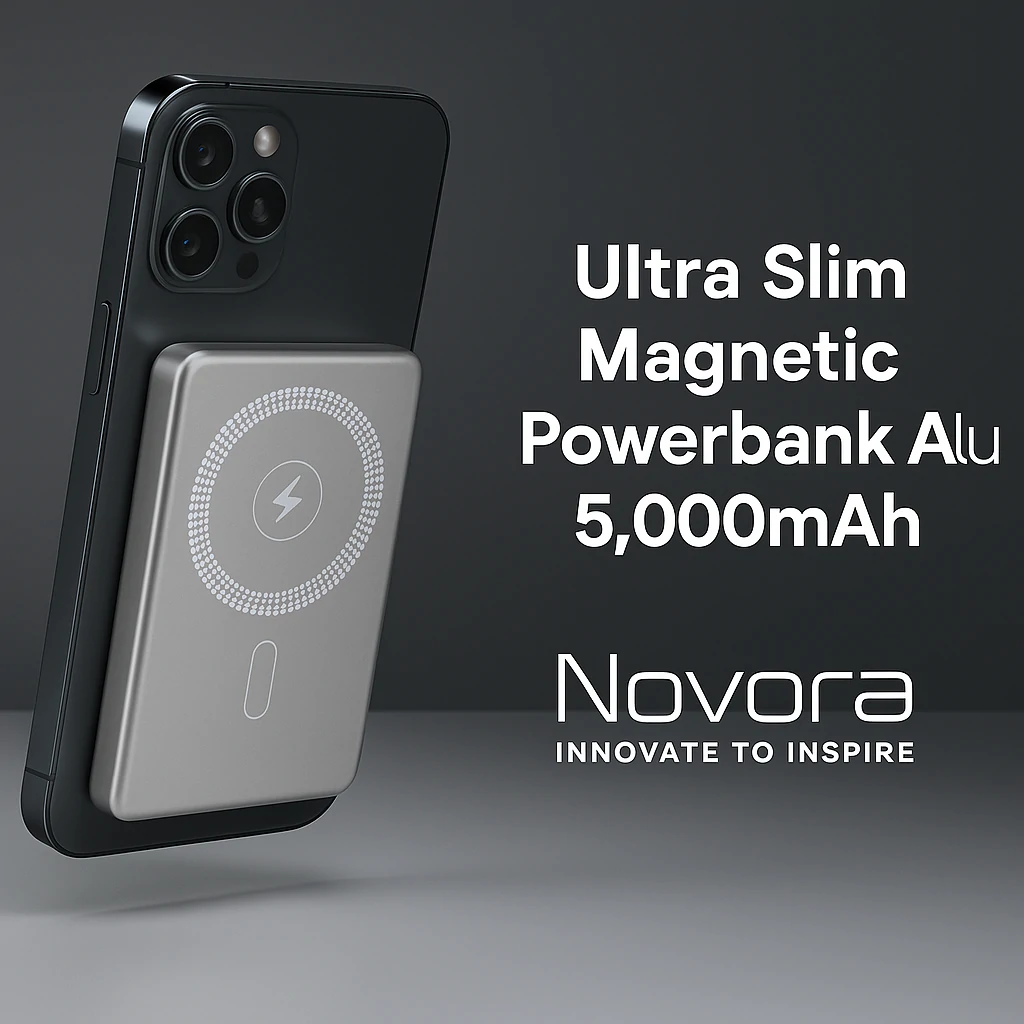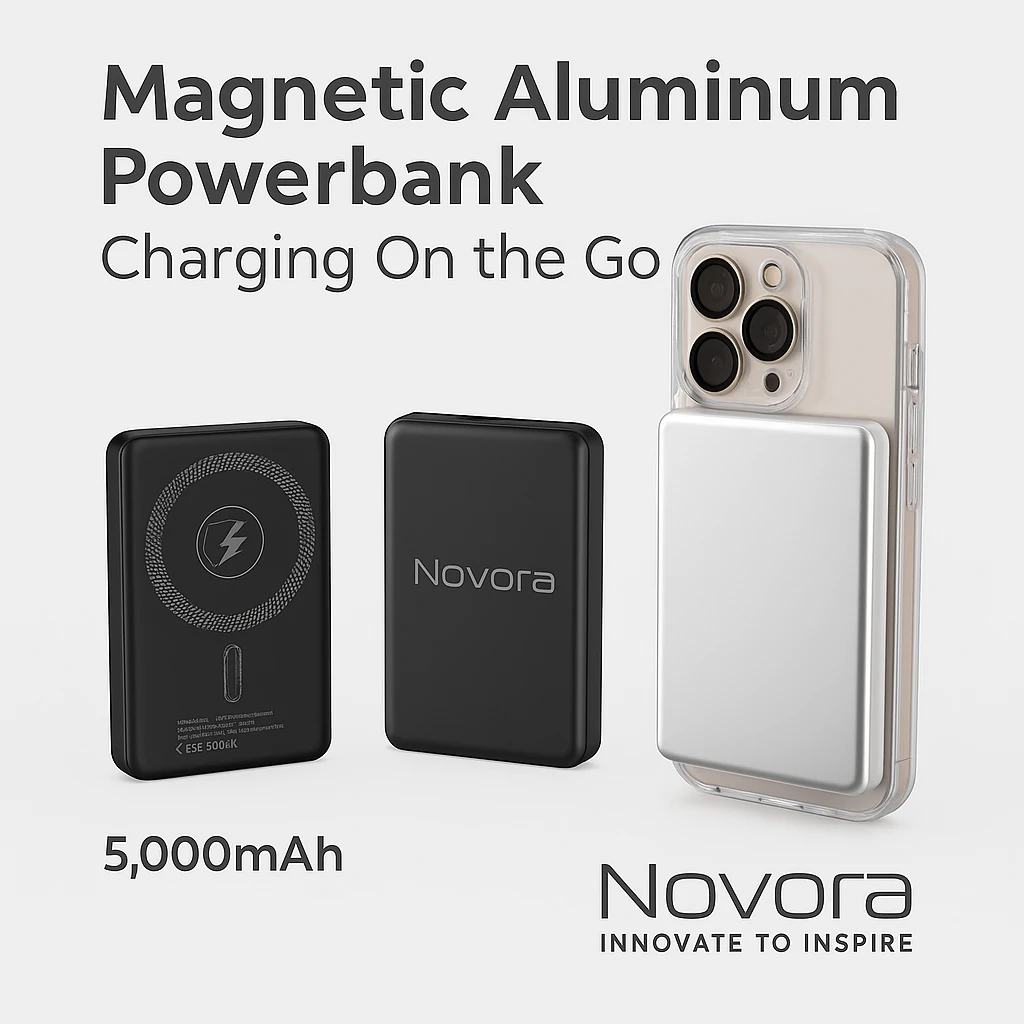 Portable 5,000mAh magnetic aluminum powerbank.