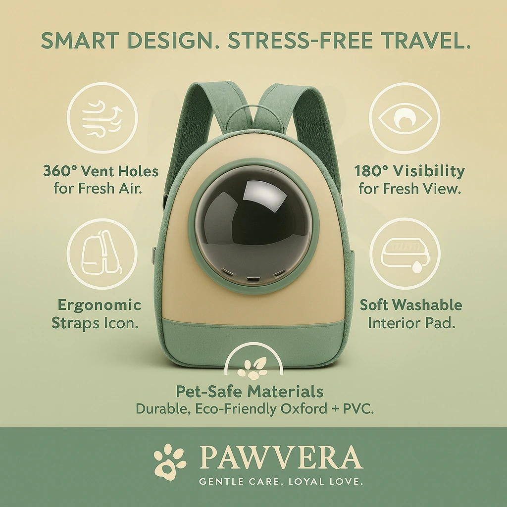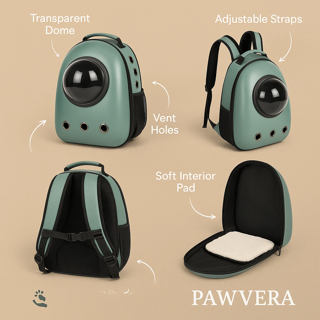 A travel-ready capsule backpack with ventilated hard shell and viewing bubble—safe, stylish transport for cats and small dogs.