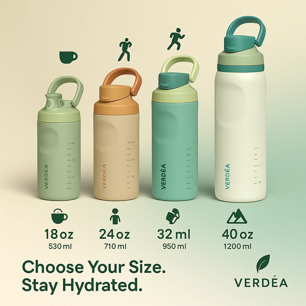 Sizes: common Verdea capacities 12/18/24/32/40/50 oz depending on model