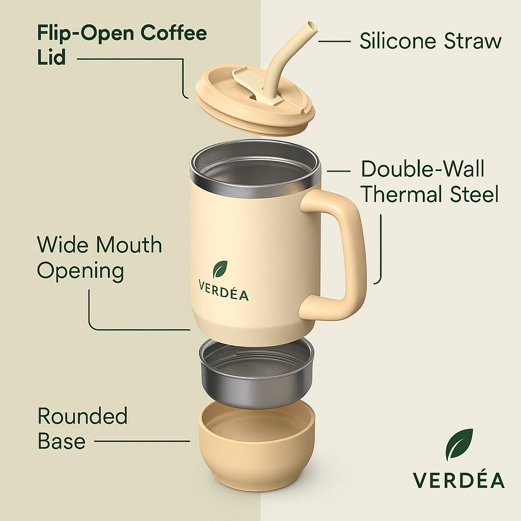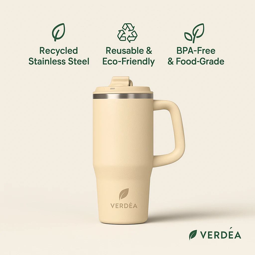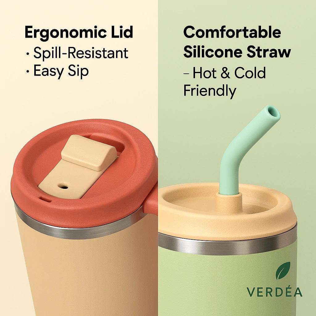 Premium Verdea Tumbler with 2-in-1 Coffee Lid crafted for daily hydration with sustainable materials and modern insulation. Combines minimalist design with reliable performance for home, office, fitness, and travel.