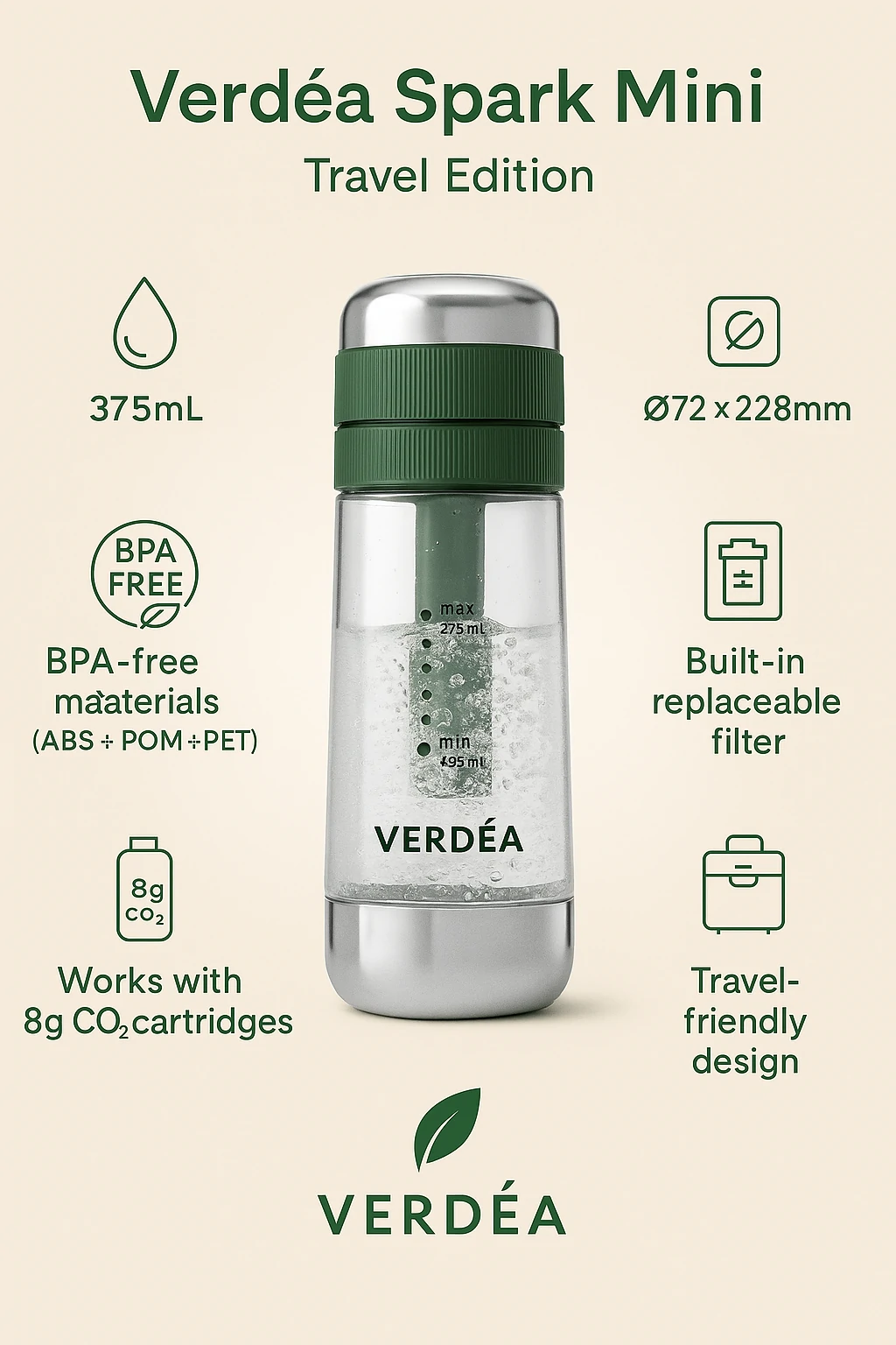 - Reusable Verdea bottle