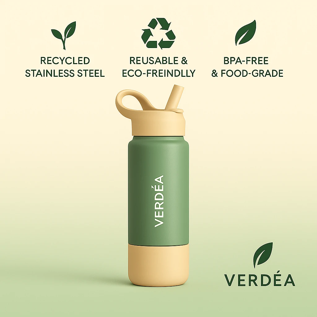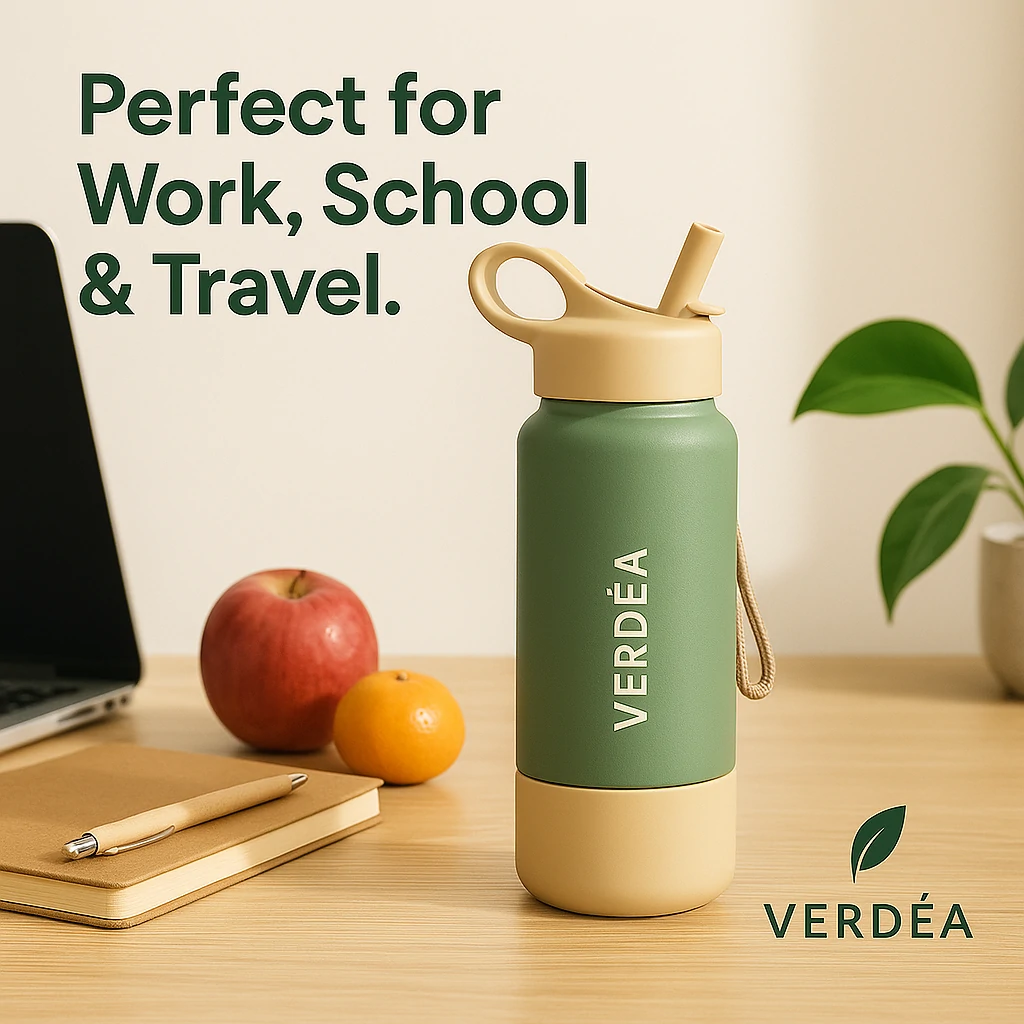 Premium Verdea Water Bottle with Silicone Straw Lid crafted for daily hydration with sustainable materials and modern insulation. Combines minimalist design with reliable performance for home, office, fitness, and travel.